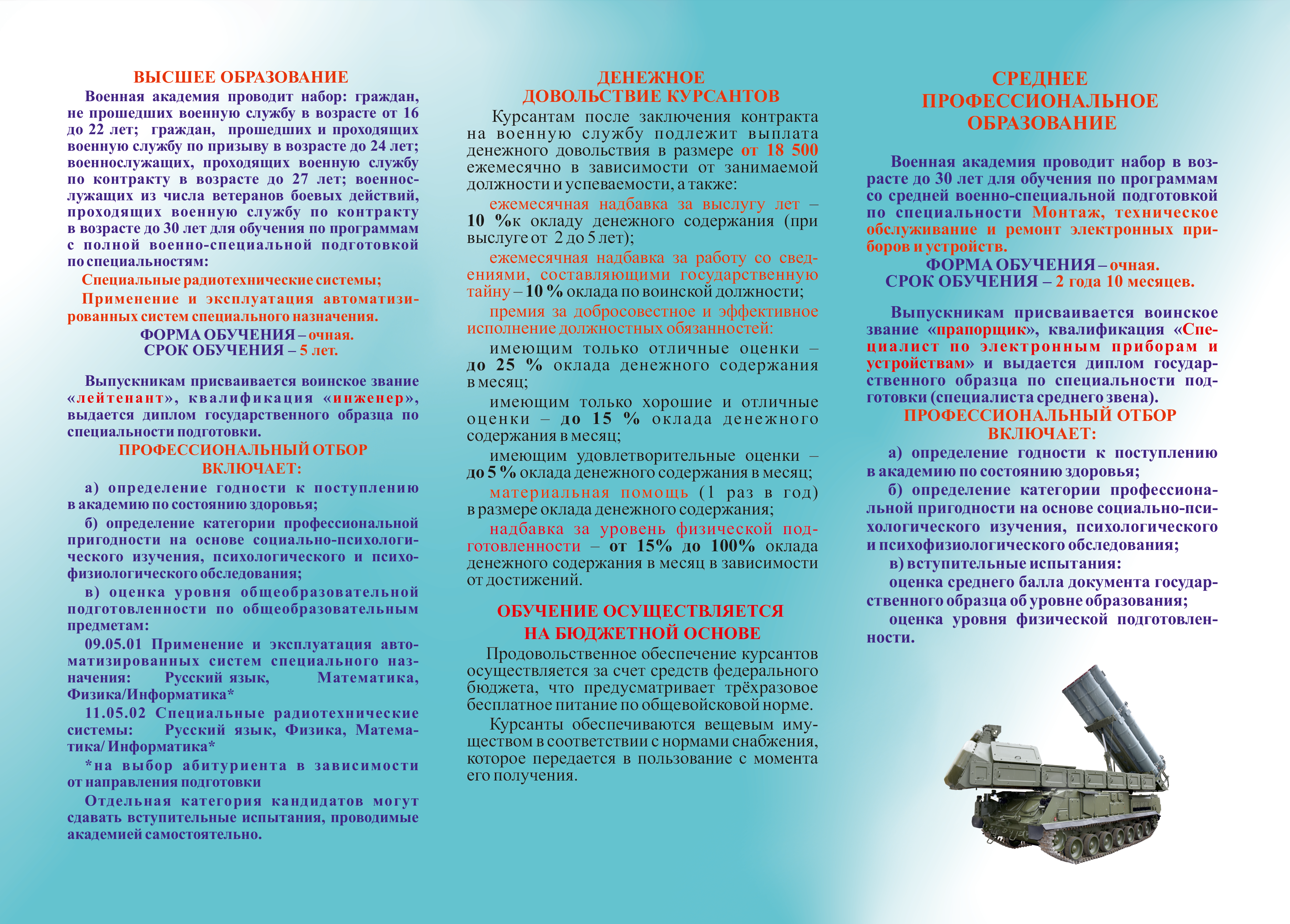 прапорщиков со средней военно-специальной подготовкой со сроком обучения 2 года 10 месяцев ˗ по трем специальностям.